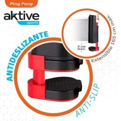 Improvise a game of table tennis with the Aktive Sports set! Complete ping pong set with retractable net 165 cm long to place on tables with a maximum thickness of 5 cm.
