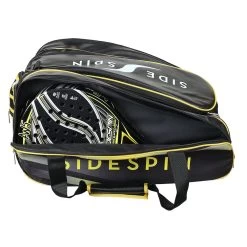 Double paddle for up to 4 blades, 2 on each side. Special pocket for shoes and / or dirty clothes and small zippered pocket for small objects. Made of nylon and plastic fabric imitating the 3K carbon so used in our blades.
