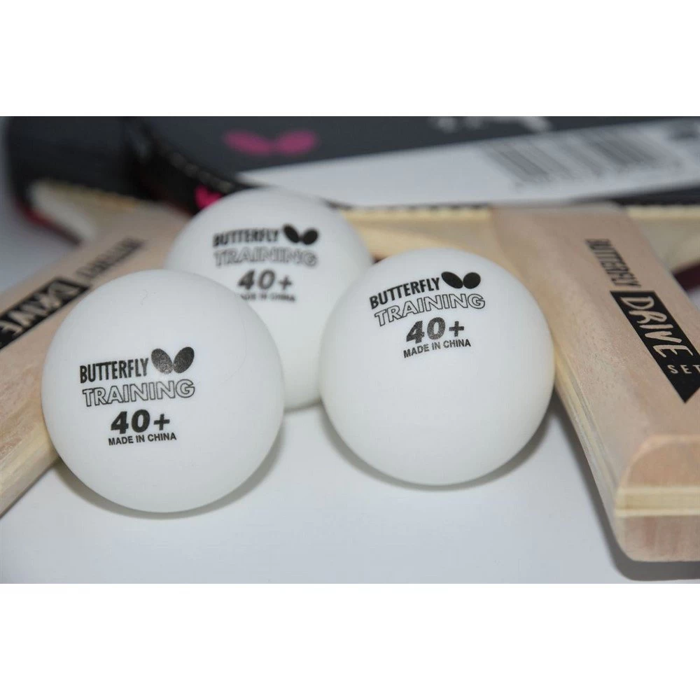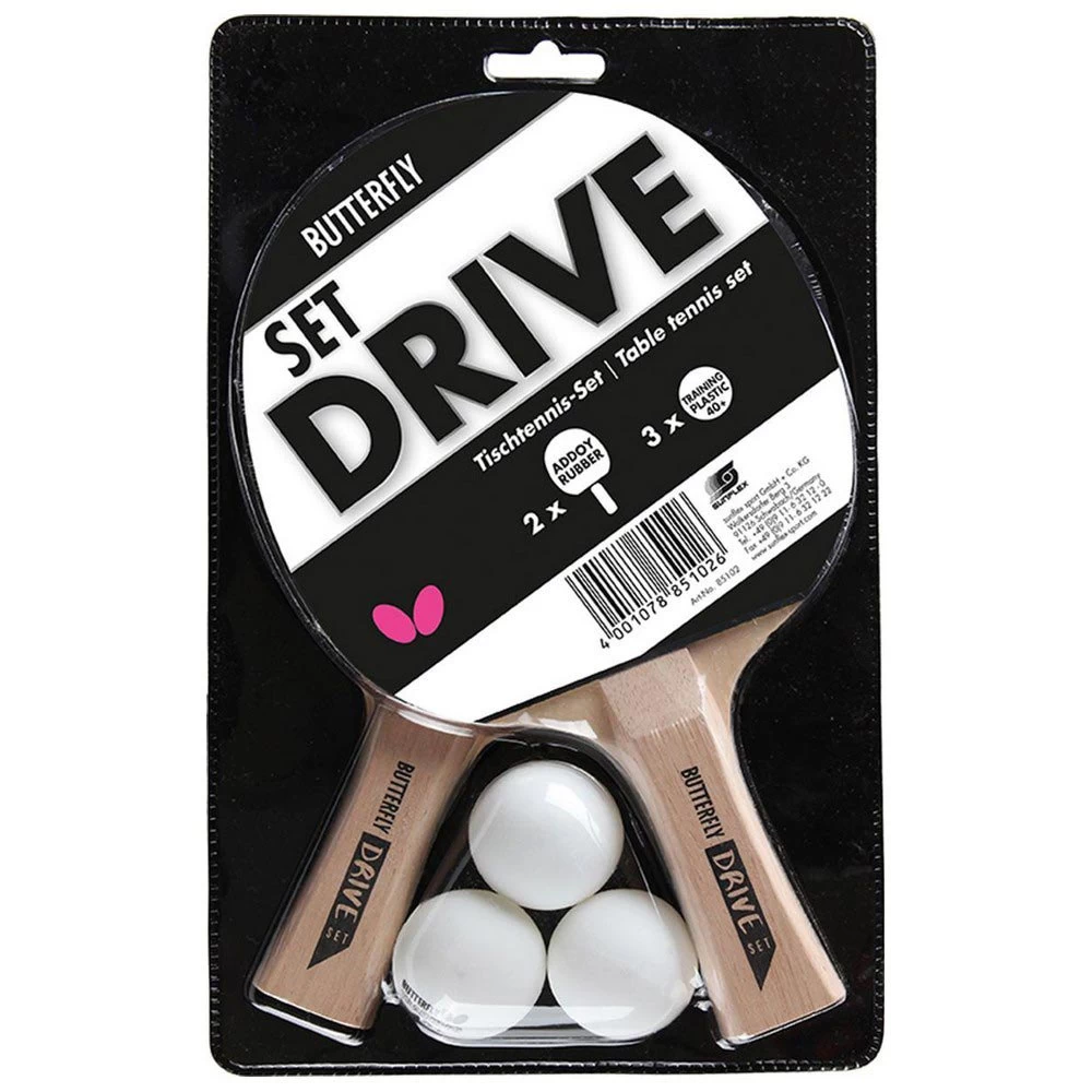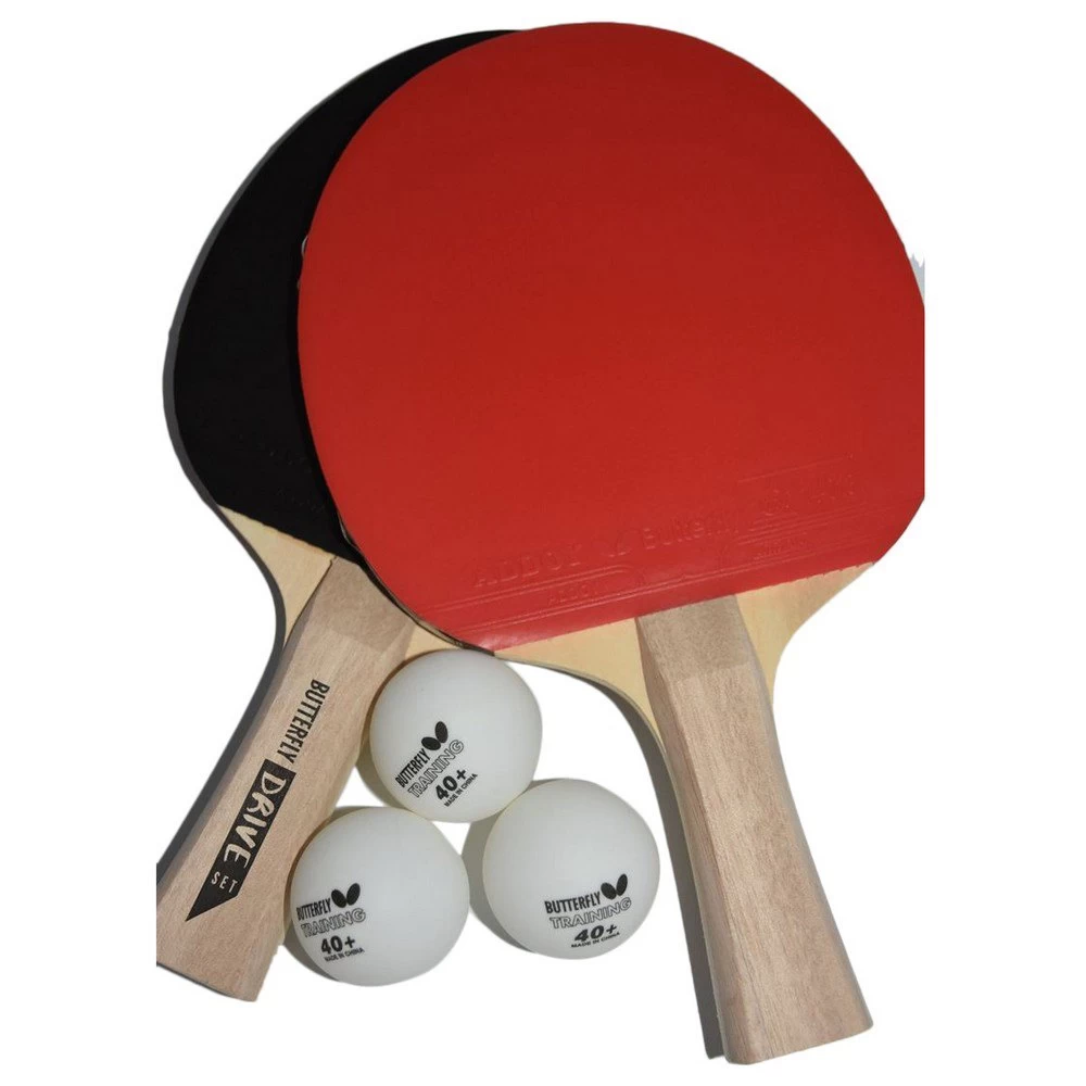Butterfly table tennis DRIVE SET contains 2 rackets with Addoy rubber and 3 training balls, plastic ball 40+.