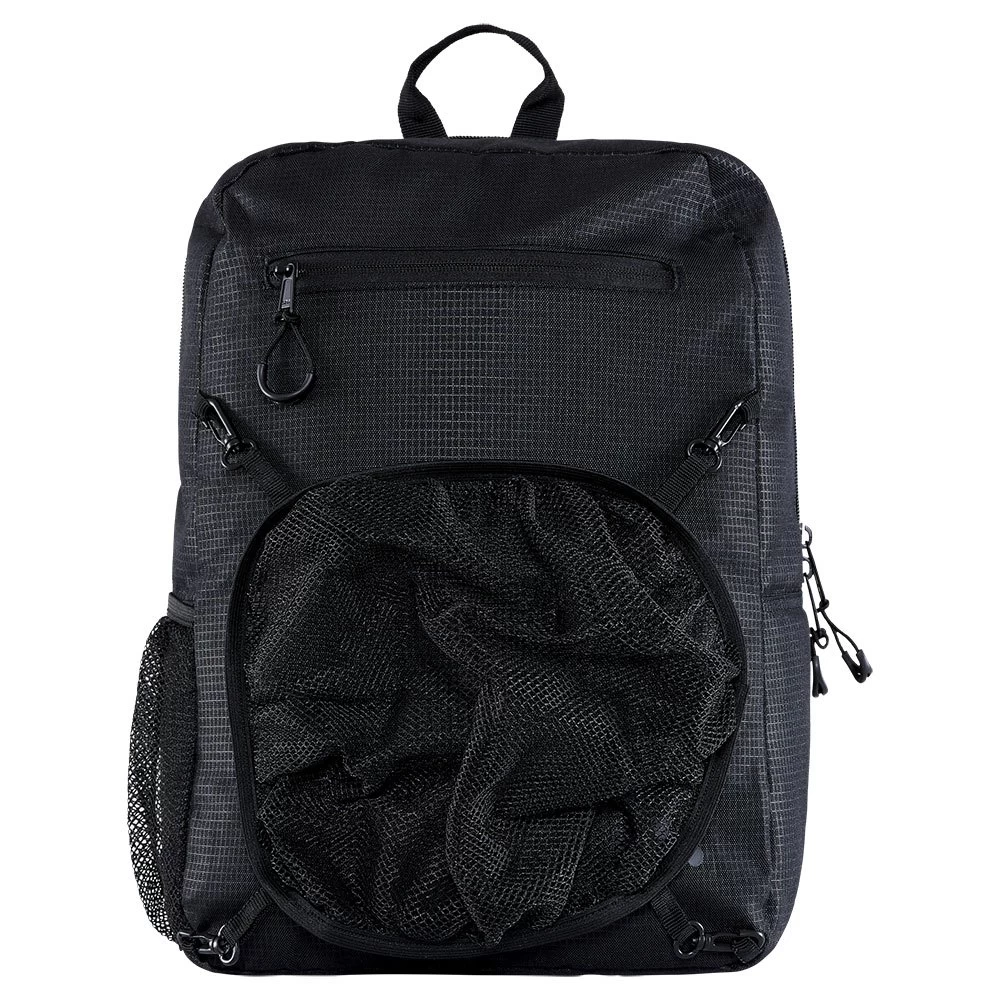 Versatile backpack with durable polyester outer and reinforced PU-coated inner.