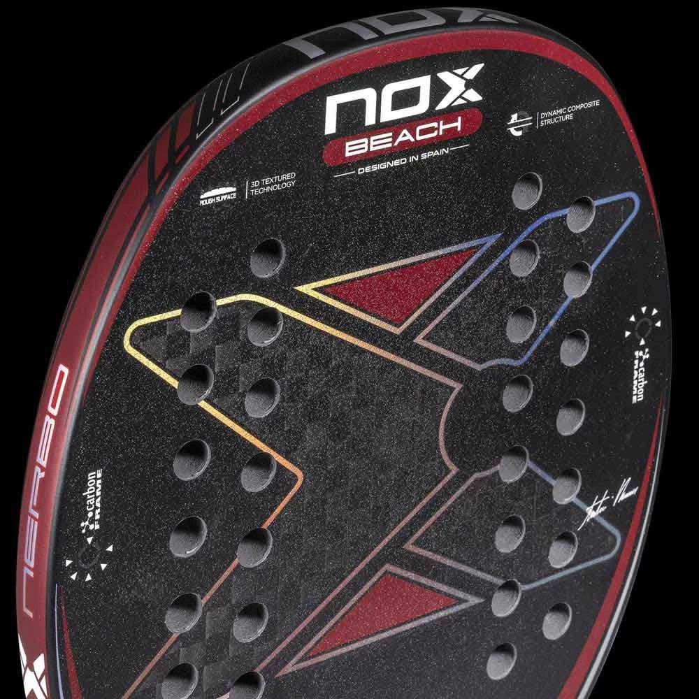 The AR10 NERBO combines the Fiber Carbon 12K on its faces with the HR3 Hard Black Eva making the racket a bit stiffer than her siter TEMPO , 100% carbon frame to help advanced and pro players to unleash their full potential on the court. Is this what you are looking for in a beach tennis racket.