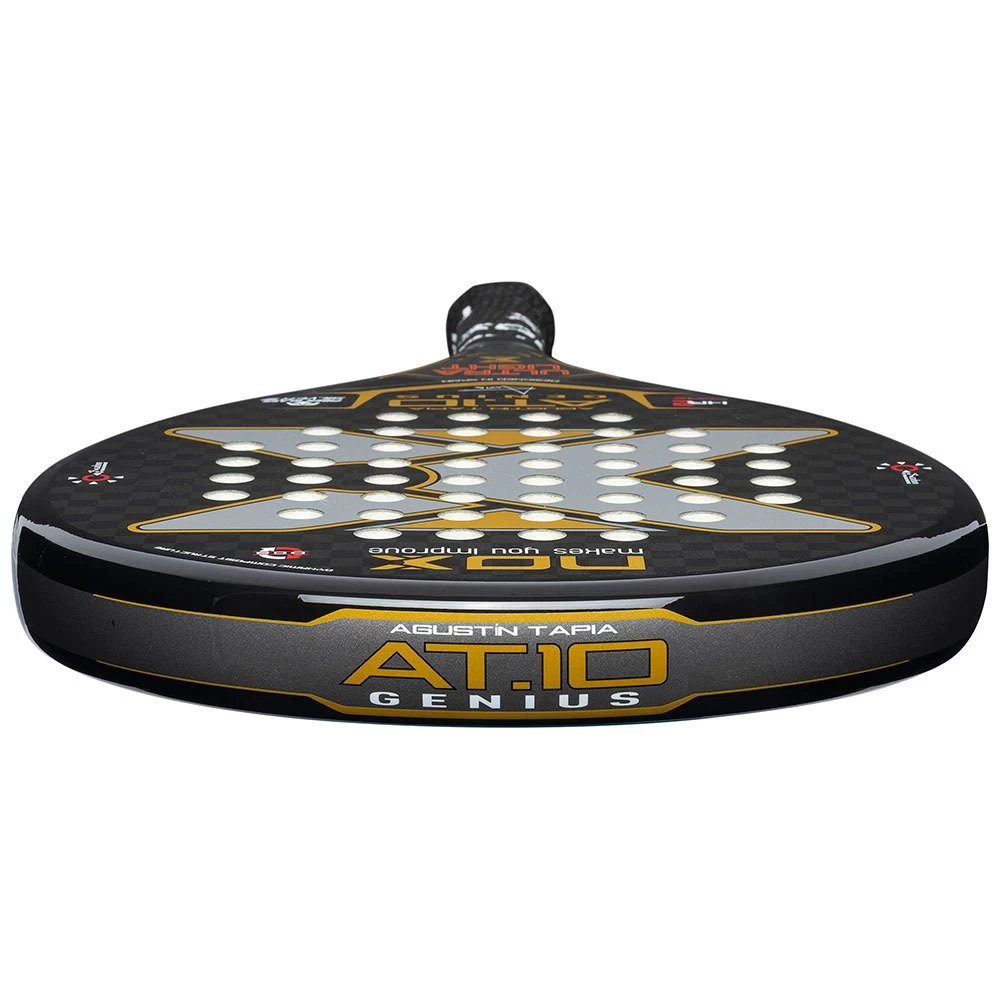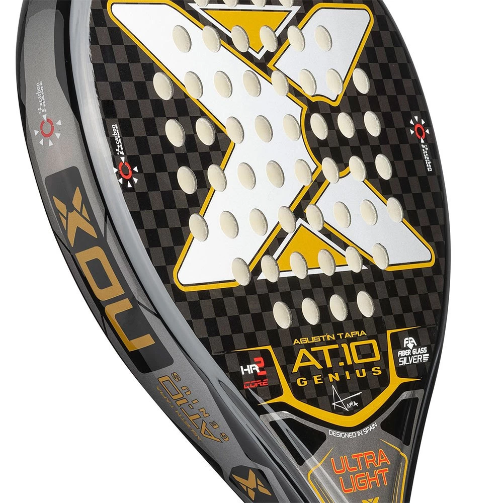 The AT10 LUXURY GENIUS is the new padel racket developed jointly with Agustín Tapia for the new season. It shares the same mould and HR3 rubber core that Agustín liked so much in the previous model during 2019. As a novelty, it incorporates the 12K carbon fiber and a rugged finish on the surfaces at the express request of the player. This racket has a bright aesthetic, designed to meet the taste of the ´´Pearl´´ of world padel. It also incorporates the AVS anti-vibration system to minimize the vibrations transmitted to your arm.