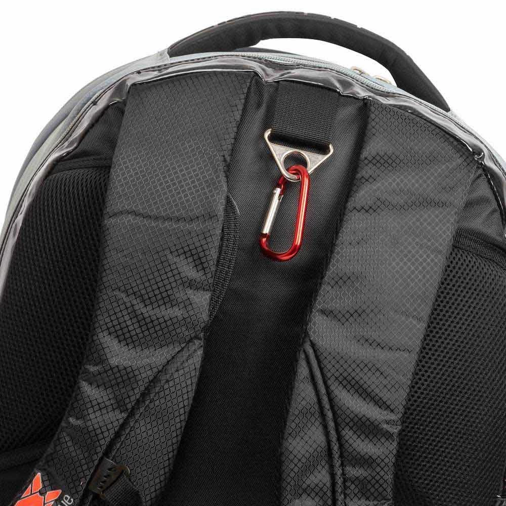 – Includes aluminum carabiner to hang the backpack on the track grille.
