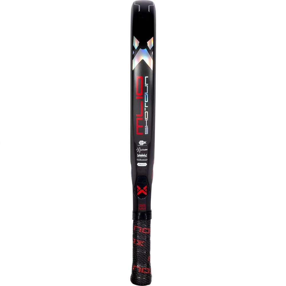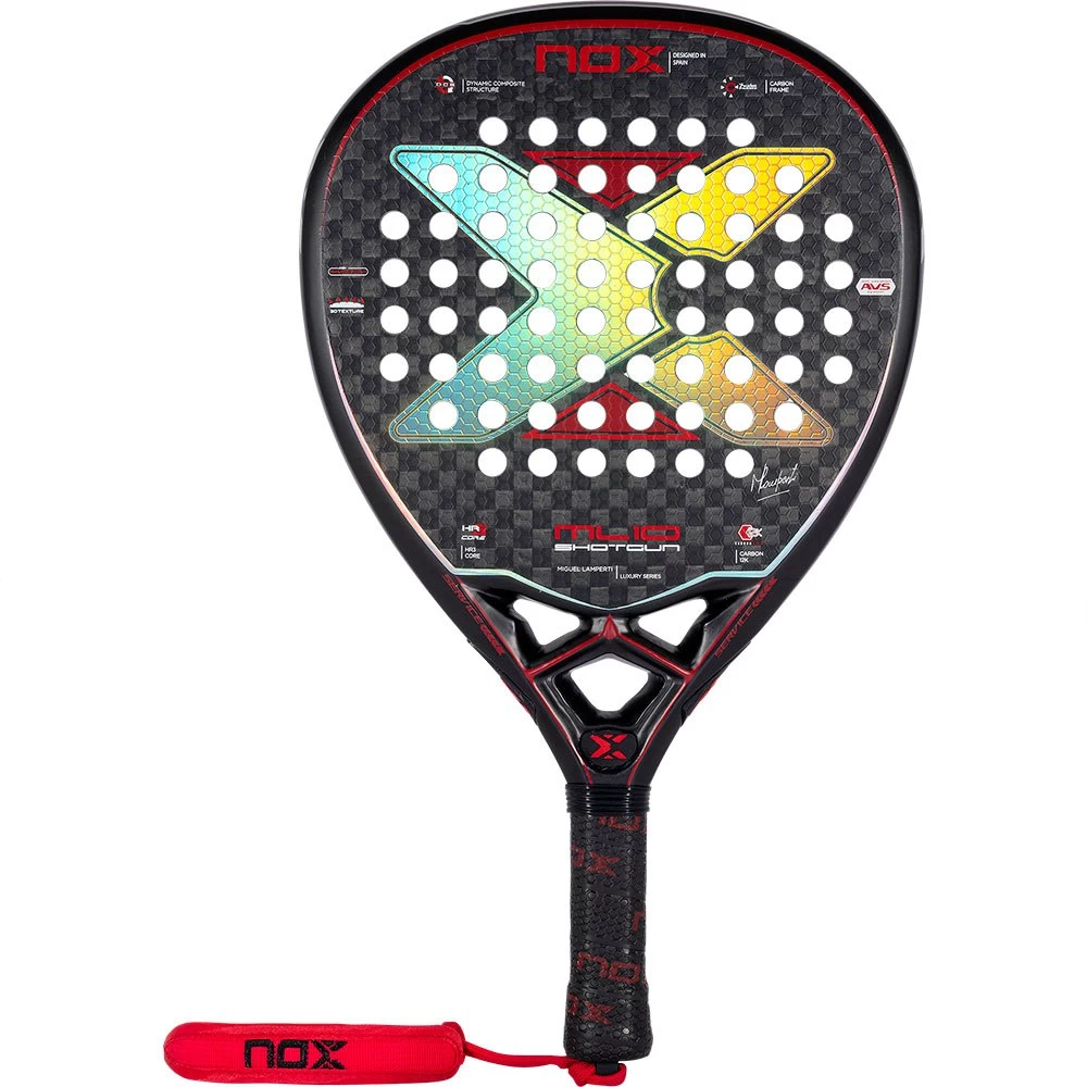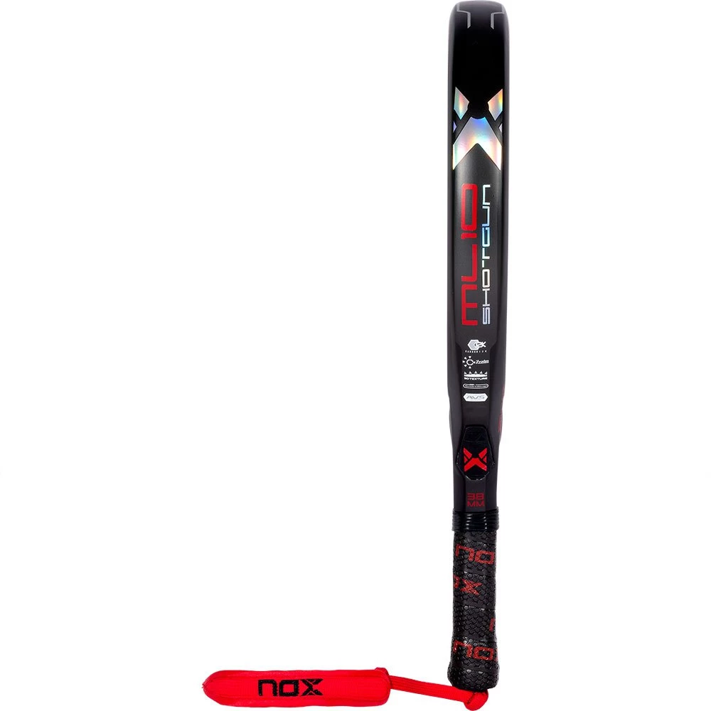 The ml10 luxury shotgun 2023 is a padel racket designed for aggressive players who base their game on pressing, fast volleys, topspin and down the wall. the shotgun 2023 edition features nox´s classic hr3 rubber on 12k carbon faces for a comfortable feel and great ball output. this padel racket includesthe pioneering smartstrap® replaceable safety cord system, now evolvedinto a compact piece for greater security and durability. more hygienic, safer and customizable. Additionally, it incorporates the AVS lateral anti-vibration system and rough-finished faces to facilitate spin shots.