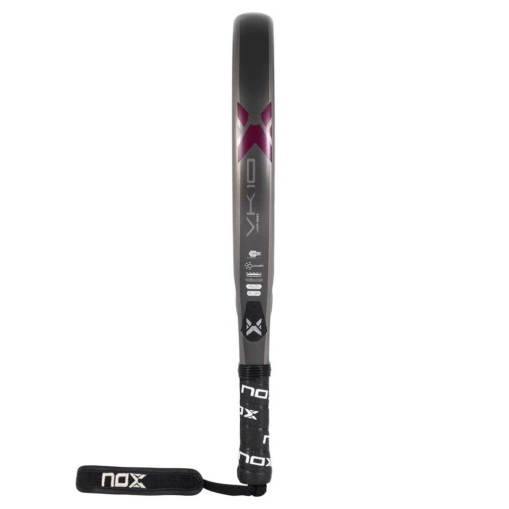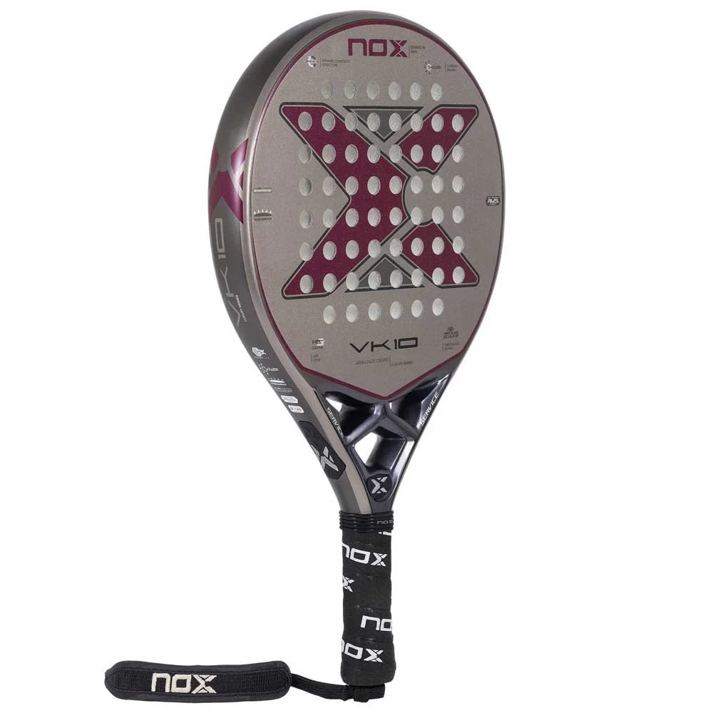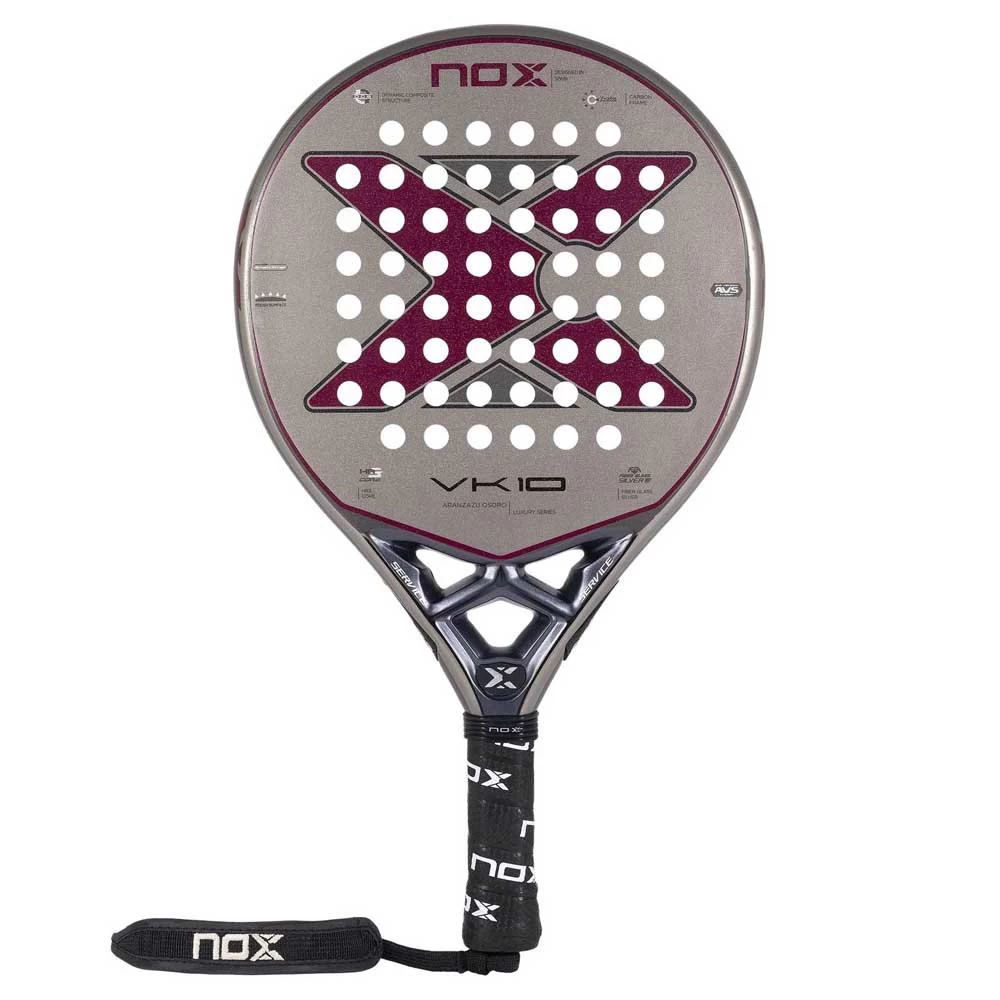 From the right-hand side of the court to the summit of world padel. We present the new Nox padel racket VK10 LUXURY 2023, the racket of Aranzazu Osoro alias “La Vikinga” (The Viking) that will enable you to bring out your greatest warrior spirit on court. A round-format low balance racket that stands out for its great striking and power. The aluminized fiberglass combined with the HR3 core makes the VK10 luxury 2022 a racket that is comfortable and easy to handle. it achieves the perfect combination between speed at the back of the court and aggressiveness close to the net. just like its sisters from the collection, the vk10 racket incorporates the avs lateral anti-vibration system and faces with a rough silica sand finish to facilitate shots with spin. as a new addition in 2023, the vk10 luxury includes the new and improved replaceable Smartstrap® safety strap system. It improves the health and safety of your racket by allowing you to easily replace the strap without losing the warranty by not having to tamper with the bottom cap. More customisation options at your fingertips.