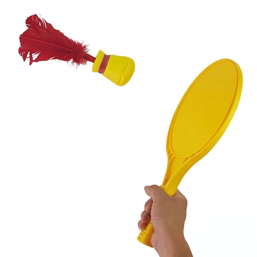 You play the ball (shuttle with feather) over the net using your flat hand or with a racket, and your opponent does the same.